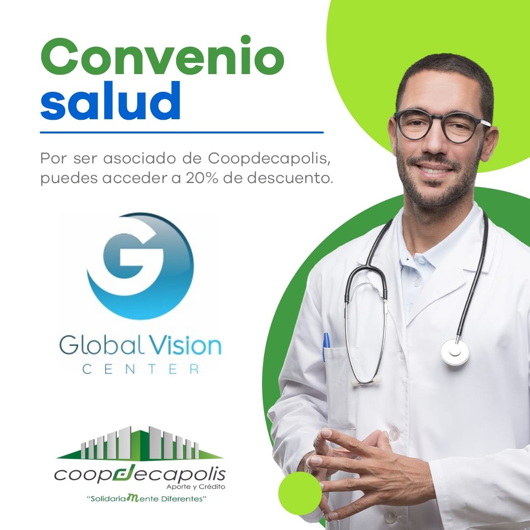 20% en monturas oftálmicas, lentes, gafas de sol, consulta ejecutiva, consulta especializada.